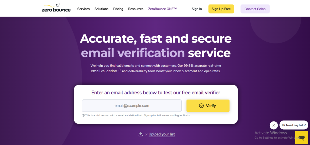 ZeroBounce offers one of the most feature-rich APIs in the market, with email scoring, activity data, and inbox placement insights available as add-ons. The core verification API costs $0.008 per request. It includes 100 free monthly credits, which is useful for low-volume testing. Credits expire monthly. ZeroBounce is a strong option when data enrichment is as important as verification, but the cost premium over MyEmailVerifier is significant for pure verification workloads.
